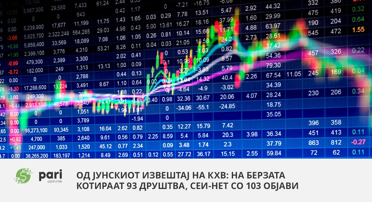 Од јунскиот извештај на КХВ: На Берзата котираат 93 друштва, СЕИ-НЕТ со 103 објави