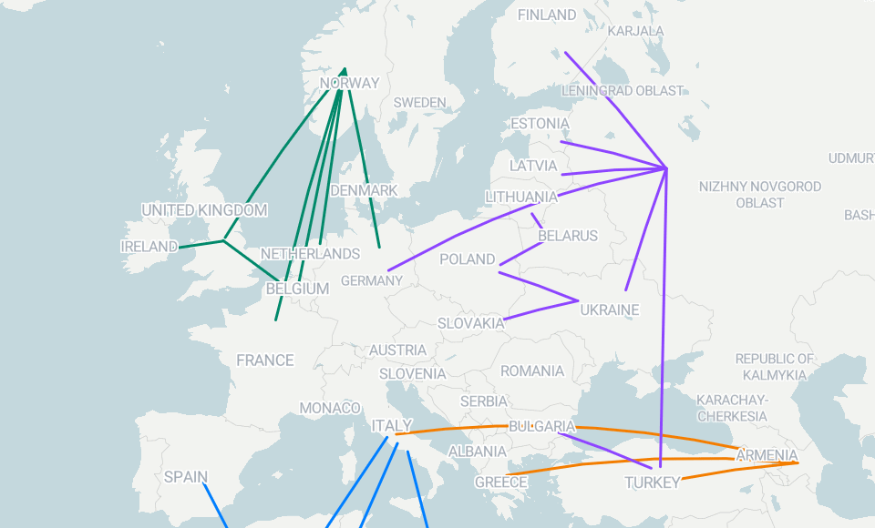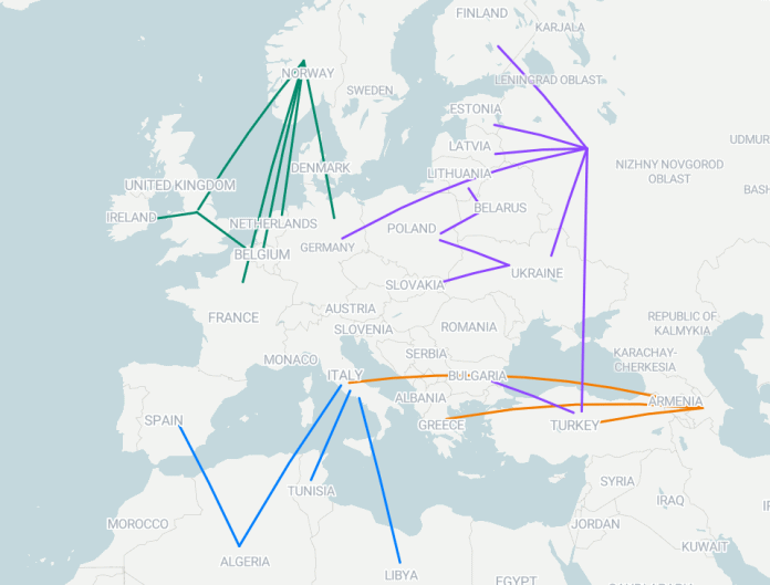 Русија ја поттикна енергетската криза во Европа со намалување на капацитетот на гасоводот Северен тек 1 на 20 отсто. Но, континентот добива и снабдување со гас од Азербејџан, Северна Африка и Северното Море. Многу земји исто така увезуваат гас со брод, при што тој патува низ пристаништа за течен природен гас.