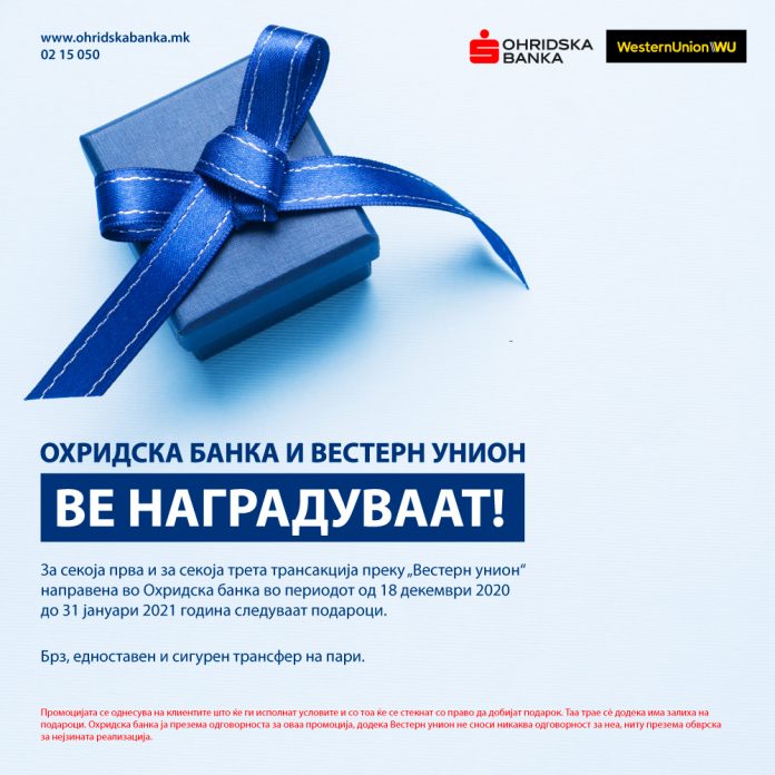 Во пресрет на празничниот период и очекувано поголемата фреквенција на реализирани Вестерн Унион трансакции, подготвивме специјална понуда за Вестерн Унион клиентите на Охридска банка АД Скопје со важност од 18.12.2020 до 31.01.2021 година.