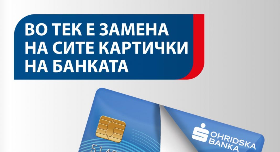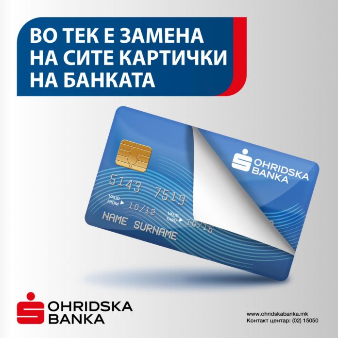 Охридска банка АД Скопје го продолжува периодот предвиден за замена на платежните картички на своите клиенти, физички и правни лица. Со тоа, овој процес ќе трае до 31 Октомври 2020 година. По истекот на овој период Банката ќе го ограничи правото на користење на картичките кои нема да бидат навремено заменети, затоа е важно клиентите да извршат навремена замена во матичните експозитури.