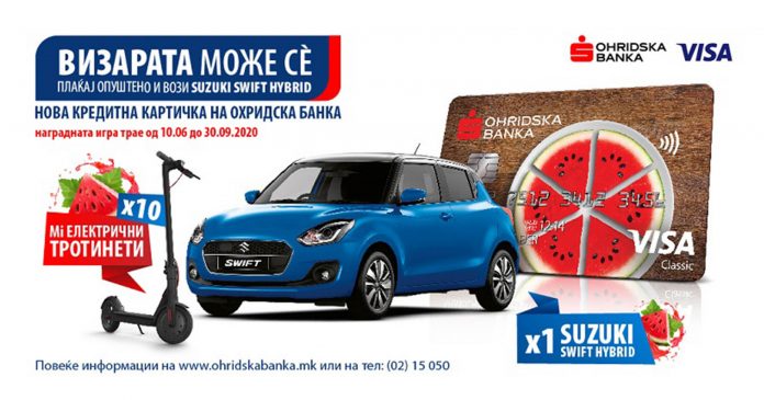 Клиентите кои ќе ги исполнат условите стануваат потенцијален добитник за хибридно возило Suzuki Swift, или пак на еден од десетте тротинети од брендот Mi. Во оваа наградна игра можат да учествуваат сите полнолетни граѓани на Република Северна Македонија, кои се корисници на една од кредитните картички издадени од Охридска банка од брендот Visa, а кои ќе аплицираат и ќе ја извадат новата Визарата кредитна картичка, како и сите оние кои во моментот немаат Visa кредитна картичка издадена од Охридска банка, а ќе аплицираат и ќе ја извадат новата кредитна картичка Визарата.