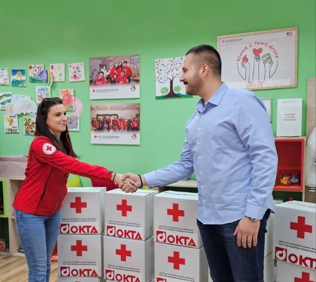 ОКТА АД – Скопје повторно, 16-та година по ред, ја потврдува својата долгорочна посветеност кон општествено одговорното делување преку поддршка на кампањата на Црвениот крст на Град Скопје „Помислете на нас“. По повод обележувањето на 16 октомври, Светскиот ден на борба против гладот, иницијативата има цел да ја подигне свеста за важноста на борбата против оваа негативна појава, како и да обезбеди директна помош за социјално ранливите категории граѓани.