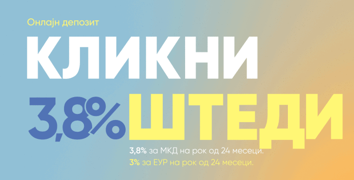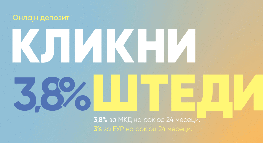 Производот Онлајн депозит е особено интересен во моментов бидејќи нуди исклучително атрактивни каматни стапки за орочени средства. Може да се штеди во денари или во евра, при што минималниот износ на вложување е 3.000 денари, односно 50 евра, додека максималниот износ е неограничен, согласно расположливите средства на трансакциската сметка (вклучувајќи го и кредитниот лимит). Средствата можат да се орочат на 6, 12 и 24 месеци, а каматите се фиксни за целиот период на орочување. Па така, за штедење во денари тие изнесуваат 2% ако е орочувањето на шест месеци, 3.3% за орочување на 12 месеци и дури 3.8% за орочување на 24 месеци. Доколку се штеди во евра, каматните стапки изнесуваат 1.5, 2.5 и 3% во зависност од периодот на орочување. Кај Онлајн депозитот износот кој што се уплаќа е фиксен, односно нема можност за дополнителни уплати и исплати, а каматата се исплаќа на крај на периодот на орочување. Постапката за креирање на штеден влог е едноставна, а договорот за орочување на средствата од страна на клиентот и Банката се потпишува во електронска форма.