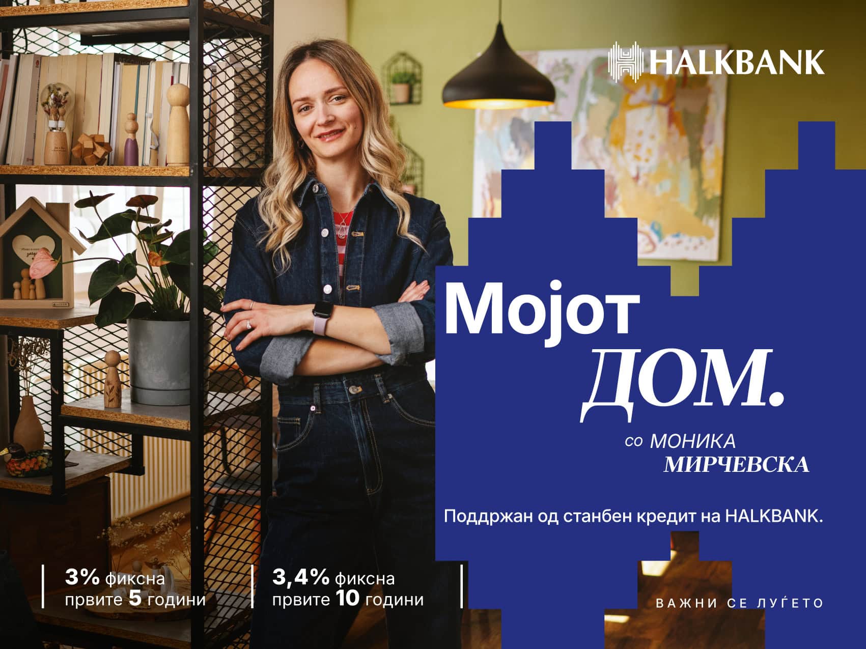Идеални за стекнување свој дом се станбените кредити на Халкбанк. Наменскиот станбен кредит обезбеден со полиса за животно осигурување и полиса од незгода може да се користи за купување стан или куќа, како и рефинансирање на изложеноста во други банки по основ на станбен кредит. Кредитот е со рок на отплата до 360 месеци, почнувајќи од 3% фиксна каматна стапка за првите 5 години или почнувајќи од 3,4% фиксна каматна стапка за првите 10 години. Провизијата за обработка на кредитот е 0%.