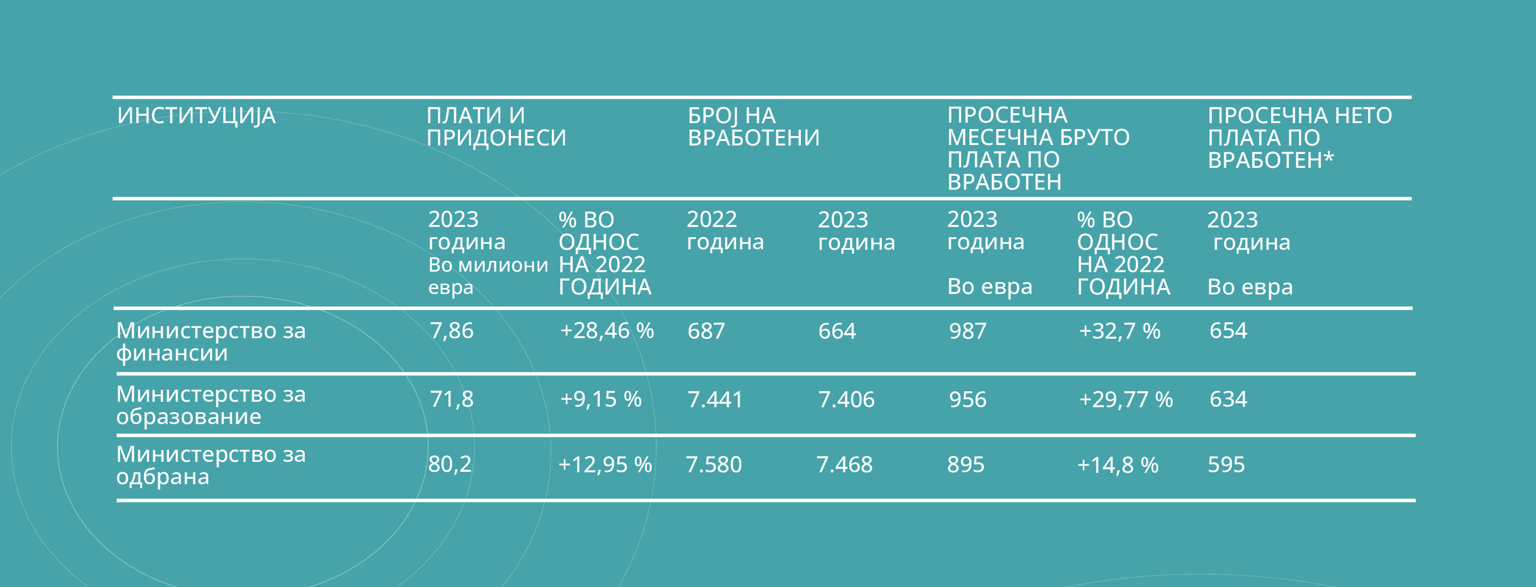 Со Буџетот за 2023 година, кој е во собраниска процедура во моментов, се планира наредната година да има 26,7 милиони евра или 5 насто повеќе пари за плати на јавната администрација. Сепак, ова зголемување не е рамномерно за сите 16 министерства.