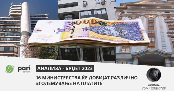 Со Буџетот за 2023 година, кој е во собраниска процедура во моментов, се планира наредната година да има 26,7 милиони евра или 5 насто повеќе пари за плати на јавната администрација. Сепак, ова зголемување не е рамномерно за сите 16 министерства.
