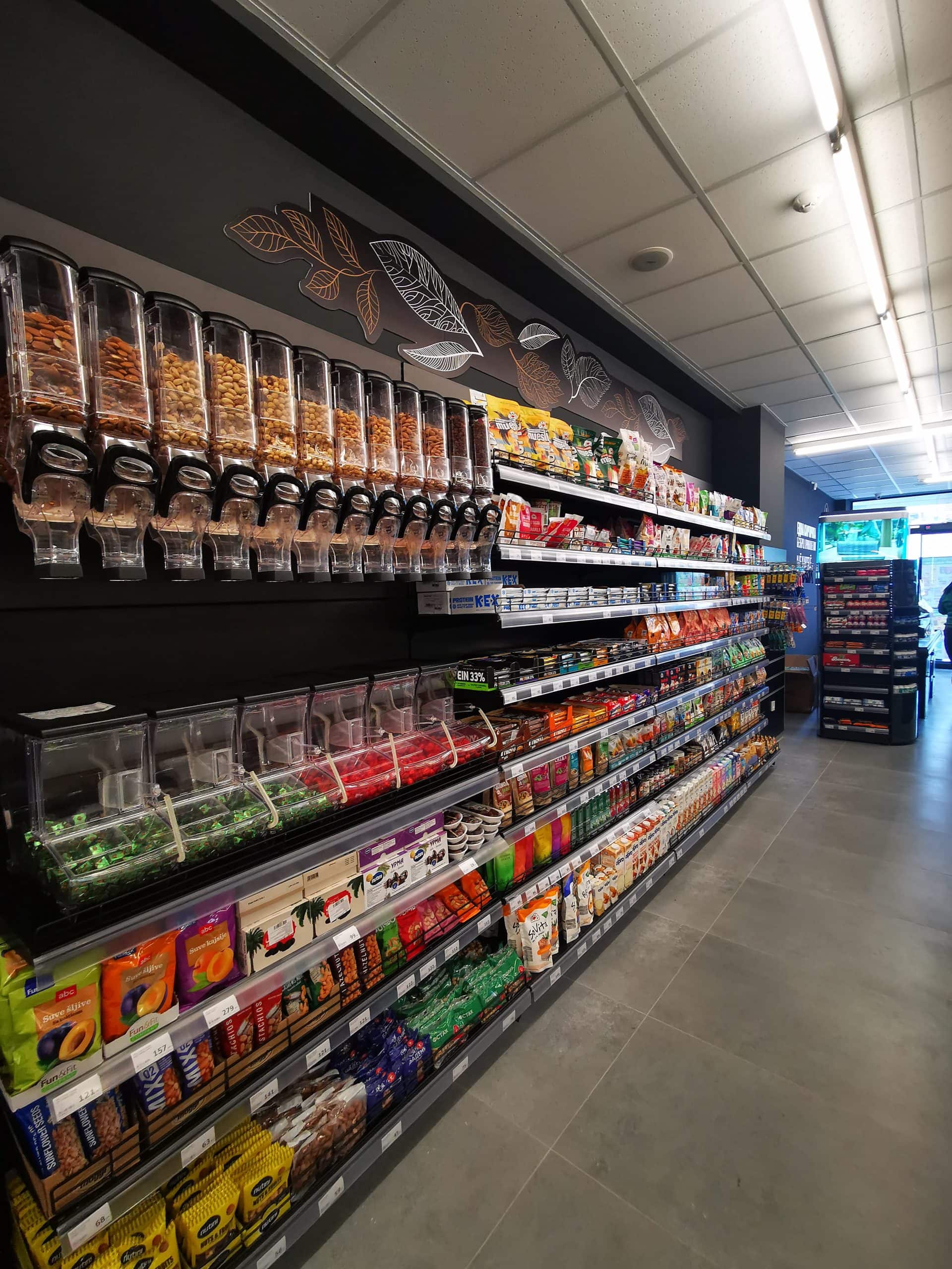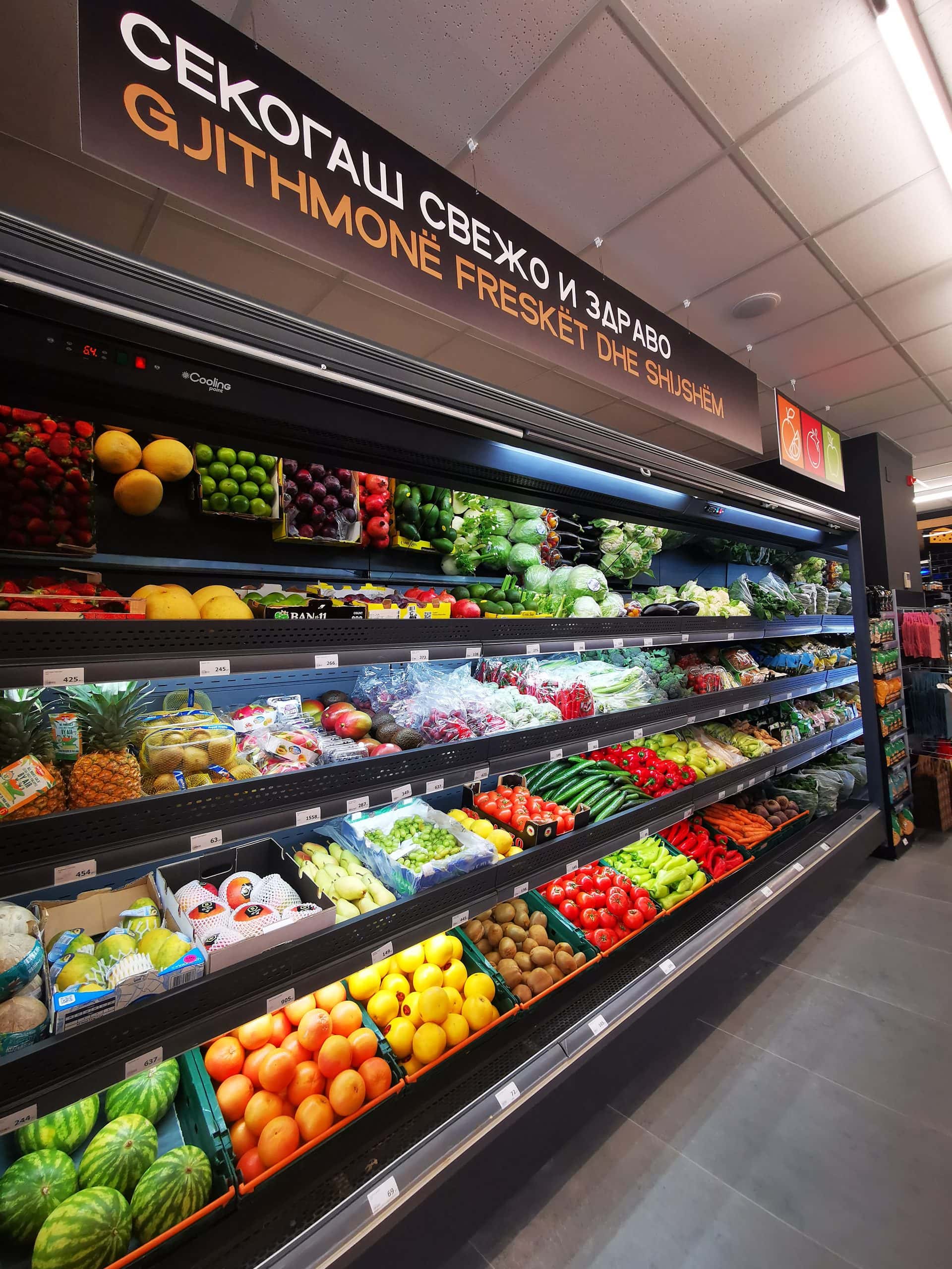 Покрај редовните оддели со широка палета од над 3500 производи, маркетот располага со пиљара со богата понуда на свежо овошје и зеленчук и месарница каде може во секое време да се купи свежо и квалитетно месо, преработки од месо, сувомеснати и млечни деликатеси и оддел за здрава храна.