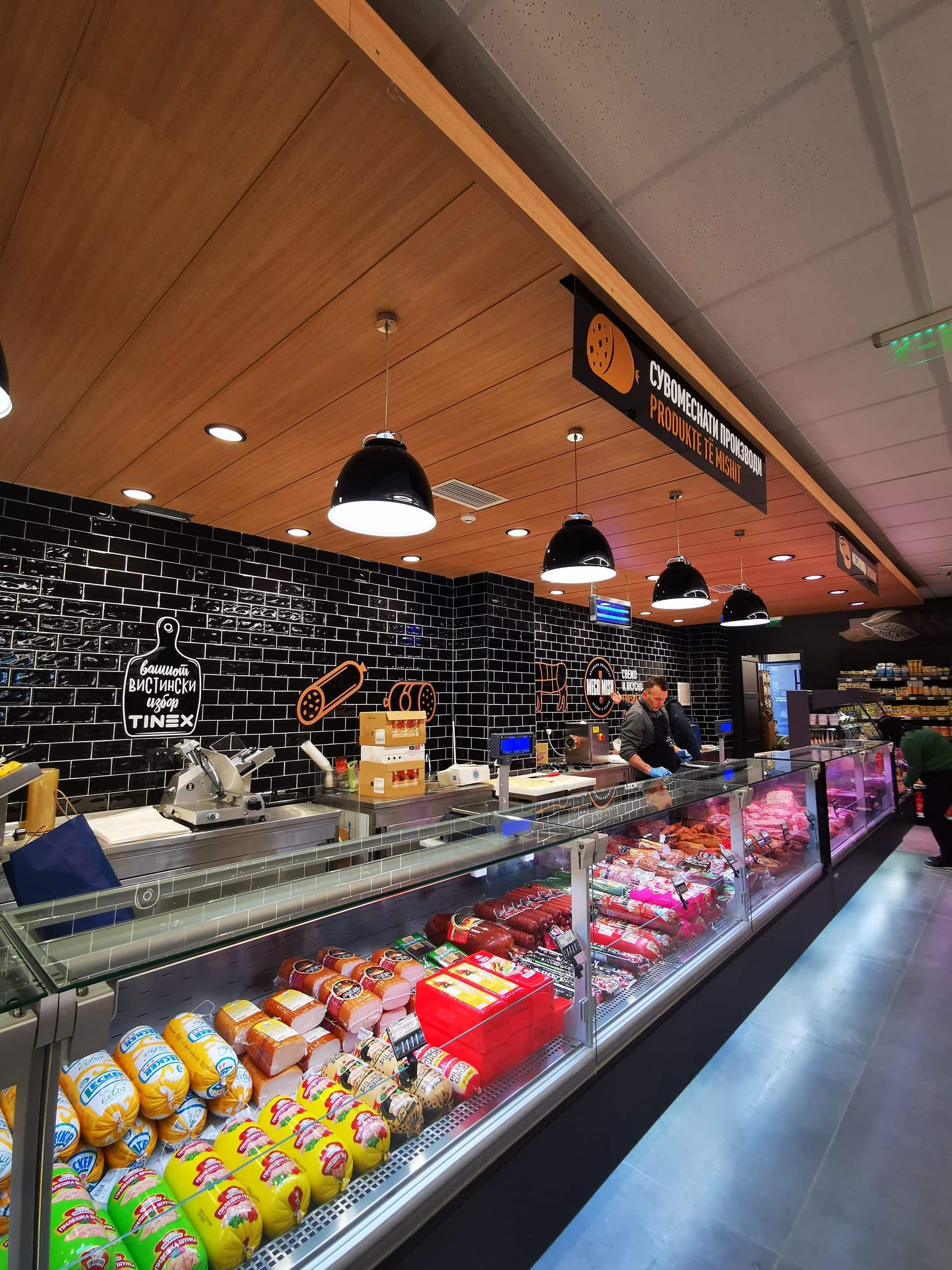 Во маркетот е интегрирана висока функционалност и естетски дизајн на ентериерот, со цел на потрошувачите да им се обезбеди лесно и удобно пазарење. Производите се позиционирани според светски стандарди за лесна достапност, а ознаките во маркетот се лесно видливи и им овозможуваат на купувачите брзо да ги најдат своите омилени производи. Во маркетот може да се најдат производи од домашно потекло, но и производи од увоз кои се достапни единствено во Тинекс маркетите.