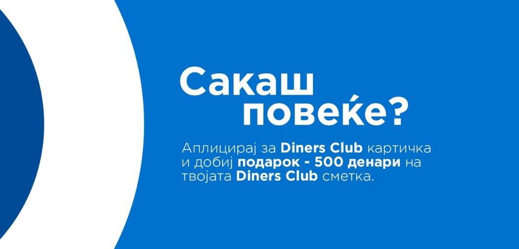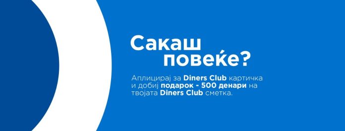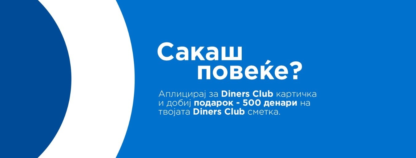 Сакате повеќе? Аплицирајте до 31 декември на www.diners.mk/kampanja и добијте подарок 500 денари на вашата нова Diners Club картичка!