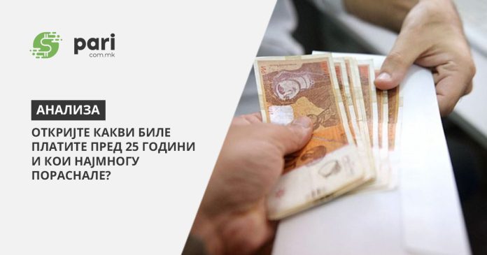 Потоа, во најголемите плати влегувале оние од секторот преработка на хемиски производи со просечна плата од 12.669 денари, па од Електростопанството со плата од 11.896 денари. И во тоа време, меѓу најниските плати биле во производството на облека каде што во прсек се земале по 5.890 денари но сепак, овој износ бил поголем во однос на просечната плата и изнесувал 66,8 проценти, за разлика од сегашниот просек во компнаиите што произведуваат облека, каде просечната плата е 18.864 денари, што е 64,7 проценти од сегашниот републички просек. Производителите на храна, пред 25 години, заработувале по 8.450 денари (слично на просечната плата), а производителите на алкохол по 13.147 денари.