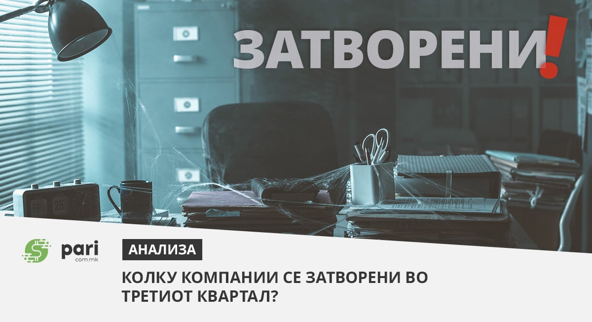 Порталот „Пари“ во соработка со „БизнисМрежа“ направи анализа во кои градови и во кои дејности има најмногу затворени фирми во третиот квартал.