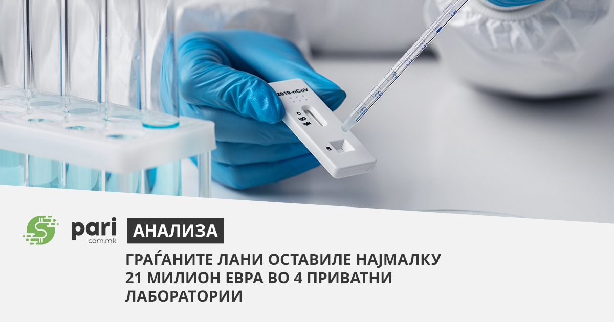 Лабораториите се чини ги живеат своите најдобри денови. Цути нивниот бизнис, а одговорен за ситуација најмногу е Ковид 19. Брисеви за корона вирус, проверка на антитела, д-димери, крвни слики, секојдневно овие лаборатории беа затрупани од пациенти кои не можеа да чекаат на здравствените услуги од државното здравство кога се работи за нивното здравје. Додека за брис за корона на државно се чекаше и по една недела приватните лаборатории беа ажурните и резултати се добиваа за еден или истиот ден. Во целиот страв од здравствената криза никој не штедеше за испитувања на своето здравје по цена и цела плата да ја потроши по лабораториите.