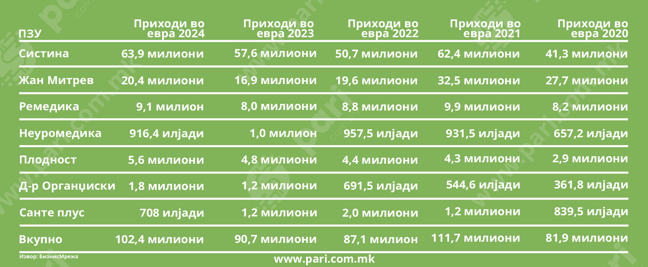 И во 2024 година „Систина“ е неприкосновена од аспект на приходите, кои достигнуваат безмалку 64 милиони евра. И, за 10,97 насто се поголеми во споредба со остварените во 2023 година. Всушност, овој резултат е подобар и од регистрираните во Ковид-кризата, која беше „златно време“ за приватното здравство.
