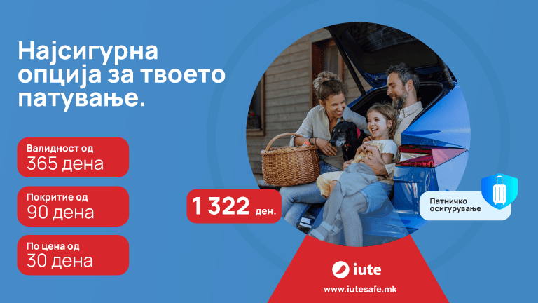 Продолжува важноста на специјалното патничко осигурување преку Iute Safe, кое за износ од промотивни 1.332 денари обезбедува покритие 365 дена во годината, за вкупен престој од 90 дена во странство, а по цена идентична како за 30 дена, без франшиза и со овозоможена 24/7 асистенција за помош.