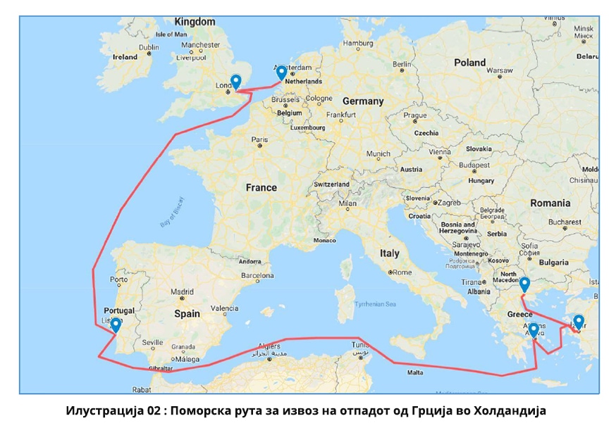 -Отпадот и контаминирана земја ќе се транспортираат од локацијата во ОХИС до Солунското пристаниште низ Македонија со камиони од страна на лиценциран превозник, почитувајќи ги одредбите на Базелската конвенција за контрола на прекуграничното пренесување на опасен отпад, како и на Европската спогодба за меѓународен превоз на опасни материи по патишта (АДР). Камионите од Македонија ќе влезат во Грција преку граничниот премин Богородица, информираат од министерството.