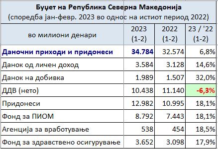 Високиот раст не цените за првите два месеци од 2023 година не испорача висок раст на приходите од ДДВ во Буџетот на Македонија!!?? Напротив. Нето приходот од ДДВ за првите два месеци од 2023 година има пад од 6,3% споредено со истиот период претходната година. (Бруто приходот од ДДВ во 2023 година има скромен раст од 1%)  – Фејсбук статус на даночниот експерт Павле Гацов, кој предизвика внимание и надвор од просторот на социјалната мрежа.