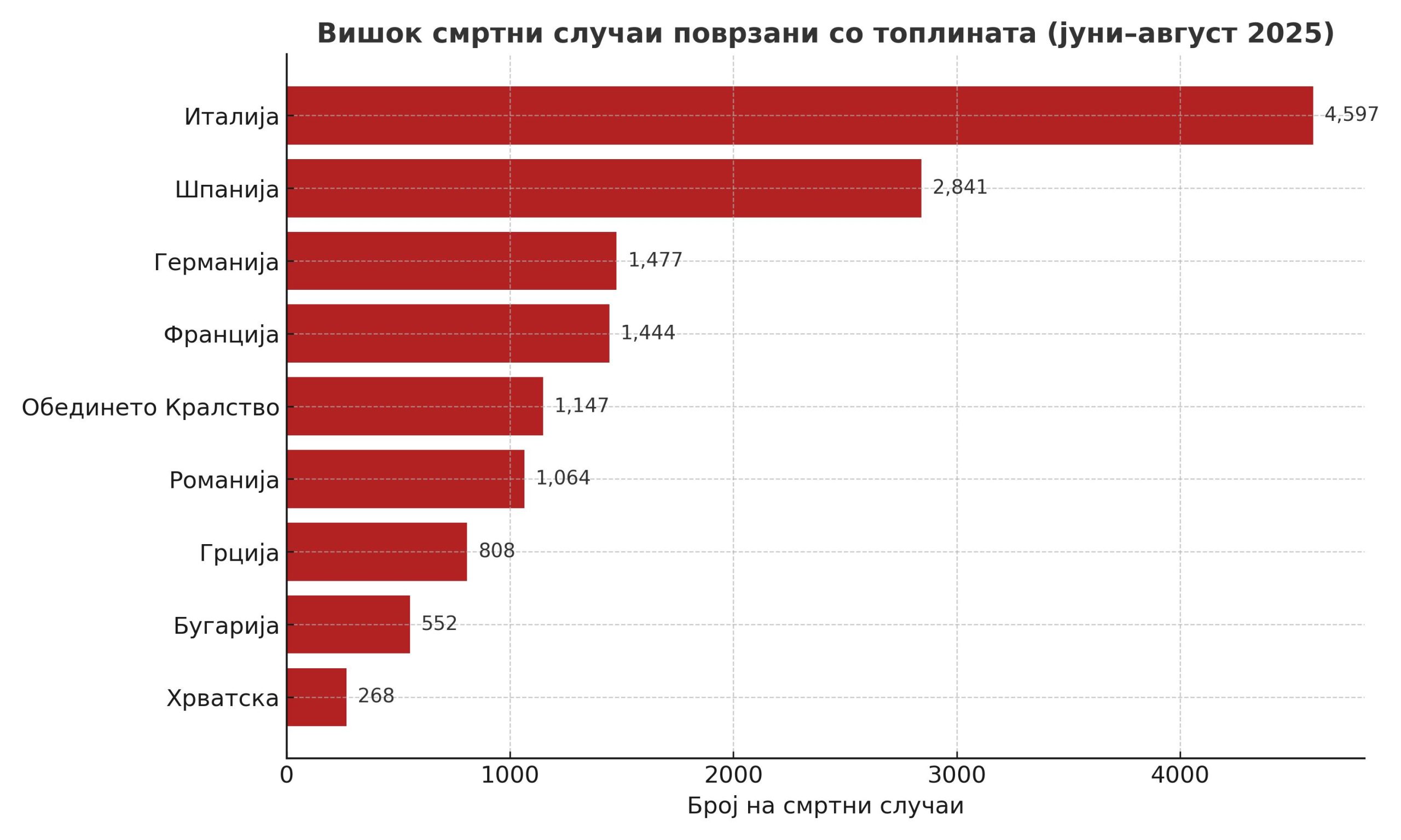 Зголемувањето на температурите, предизвикано од климатските промени предизвикало околу 16.500 смртни случаи во европските градови ова лето, покажаа резултатите од направената студија на група научници од Империјал колеџ во Лондон и Лондонската школа за хигиена и тропска медицина.
