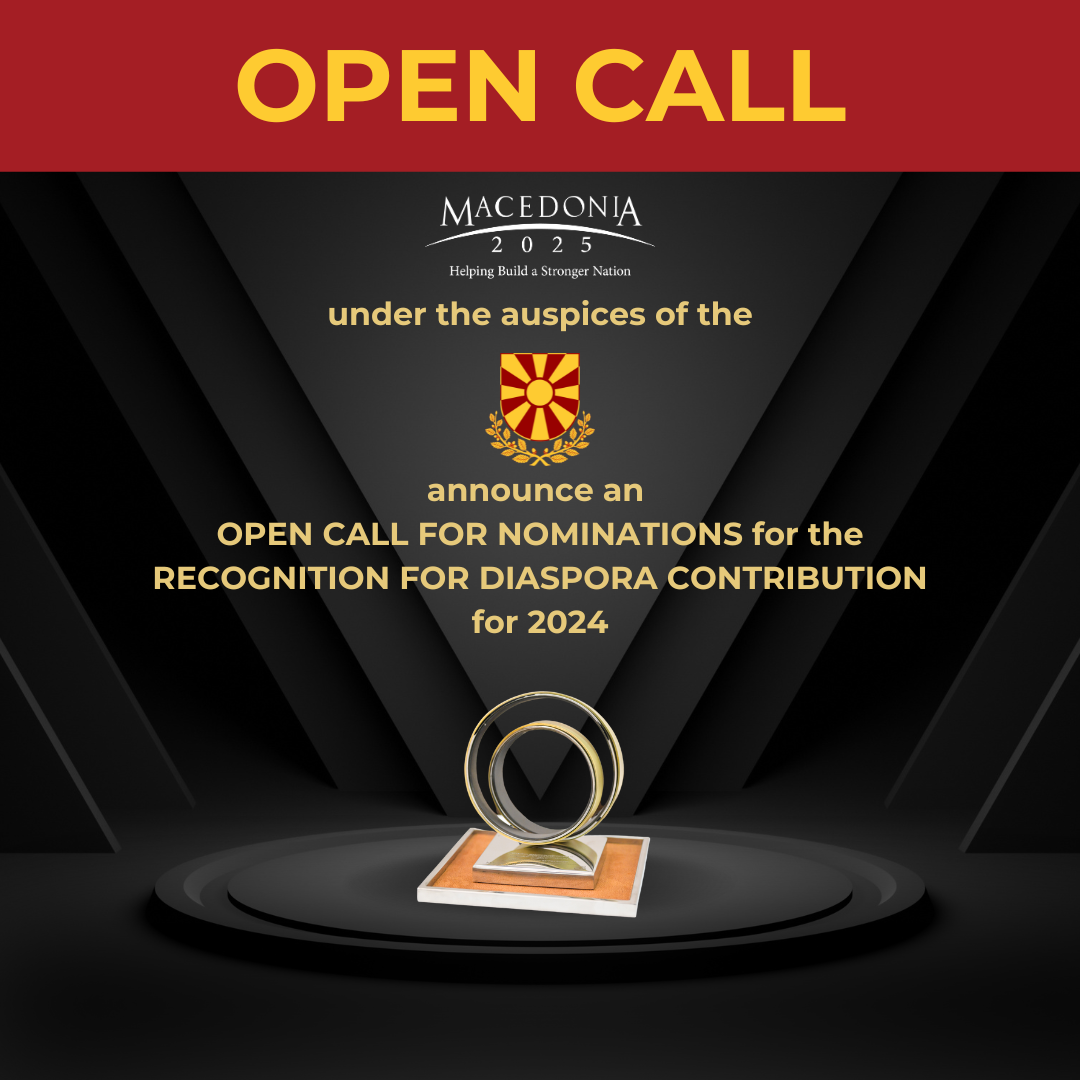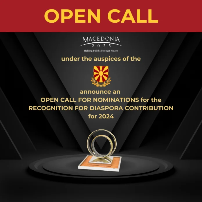 Во петок на полноќ (15 март) истекува рокот одреден во повикот до дијаспората за номинирање истакнати припадници – потенцијални добитници на признание за придонеси, објавен од иницијативата „Македонија2025“, а во соработка со Кабинетот на претседателот на државата.
