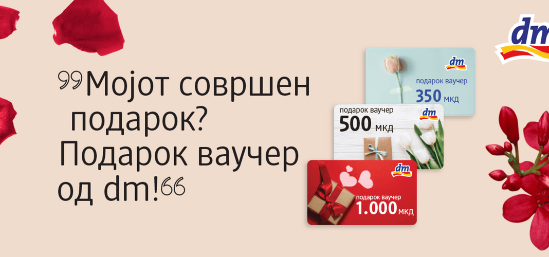 Повеќе информации можете да најдете на веб страницата на dm: Подарок ваучери | dm Македонија