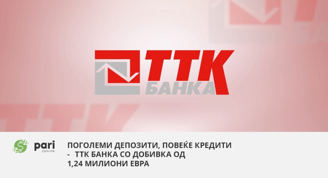 Поголема депозитна база, повеќе кредитни пласмани, повисока актива покажуваат податоците за деветмесечното работење на ТТК Банка. Исходот е добивка од 1,24 милиони евра. „Банката успеа да постигне добри резултати кои ја одразуваат одржливоста на нејзиниот деловен модел и успешното управување со деловните процеси во работењето“, посочуваат од таму.