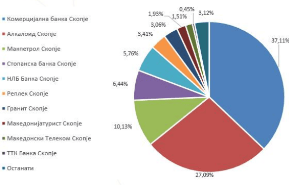 Овие пет акции со 3.980.000.826 денари (64,7 милиони евра) зафаќаат 41,5 отсто од вкупниот берзански промет остварен во текот на минатата година.
