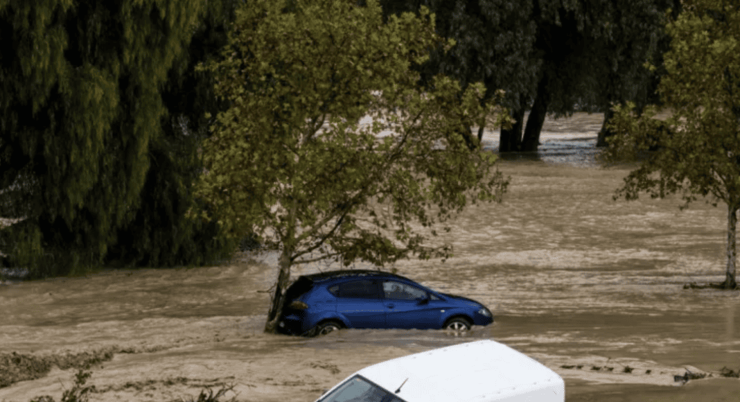 Службите за итни случаи користеле хеликоптери за да ги подигнат луѓето од домовите и автомобилите во Алора во Андалузија по излевање на река.