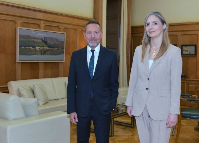 Гувернерот Јанис Стурнарас ги прими на работна средба гувернерката Анита Ангеловска-Бежоска и генералната директорка на Секторот за супервизија, Викторија Глигорова. „Разговаравме за макроекономските и финансиските случувања во нашите земји, како и за начините за подобрување на соработката во однос на банкарскиот сектор и за заштита на финансиската стабилност во регионот“, рече Јанис Стурнарас.