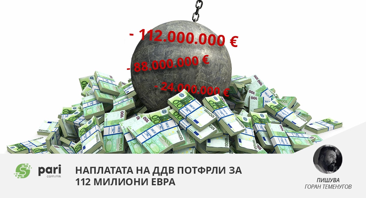 Ако на ова се додаде дека во првото полугодие од годинава имало за 88 милиони евра помал прилив од ДДВ во буџетот на државата, за седум месеци се доаѓа до сумата од 112 милиони евра помалку од основниот данок од кој се финансира државата.