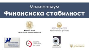 Ова е пораката којашто ја упатија гувернерката на Народната банка, Анита Ангеловска-Бежоска, министерката за финансии, Нина Ангеловска, претседателката на Комисијата за хартии од вредност, Нора Алити, претседателот на Советот на експерти на Агенцијата за супервизија на осигурување, Крсте Шајноски, претседателот на Советот на експерти на Агенцијата за супервизија на капитално финансирано пензиско осигурување, Максуд Али и директорот на Фондот за осигурување депозити, Борче Хаџиев. Тие склучија нов Меморандум за меѓуинституционална соработка заради одржување на финансиската стабилност, изготвуван во текот на изминатите неколку месеци, во согласност со препораките на Меѓународниот монетарен фонд и Светската банка.