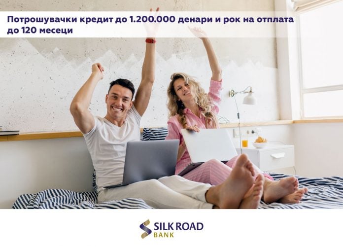 Силк Роуд Банка АД Скопје нуди можност за аплицирање за потрошувачки необезбедени кредити во максимален износ до 1.200.000 денари и рок на отплата до 120 месеци.