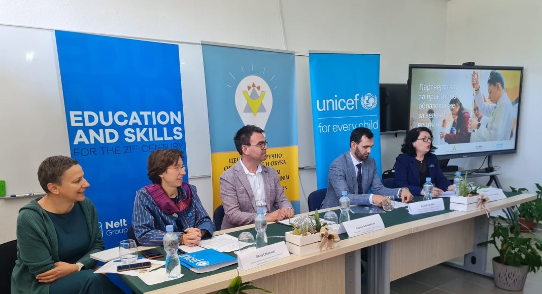 Благодарение на партнерствата со Групацијата Нелт и Шведска,  УНИЦЕФ го поддржува Министерството за образование и наука и Центарот за стручно образование и наука за развој на зелени наставни програми, обуки за наставниците и менторите, и олеснување на практичната настава со цел сите ученици во СОО да учат за животната средина и климата низ призмата на нивната струка.