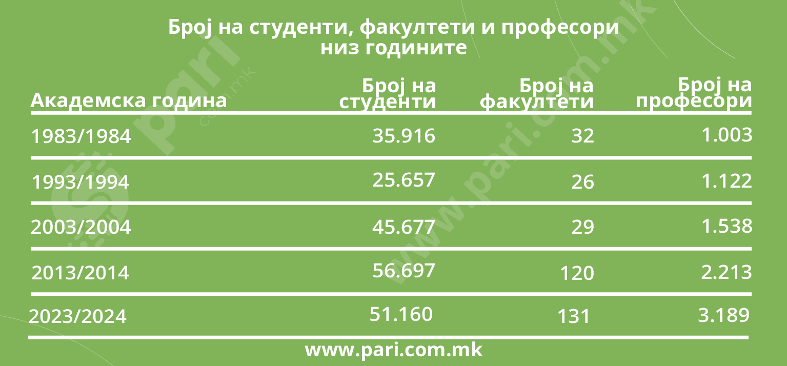 ПРЕД 40 ГОДИНИ СМЕ ИМАЛЕ 32 ФАКУЛТЕТИ, а сега 131 и многу повеќе студенти