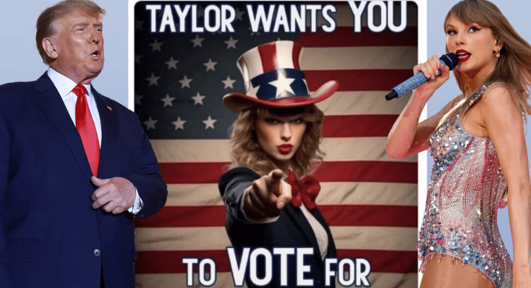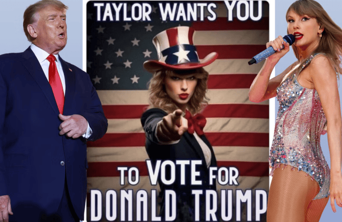 Иако американската мега ѕвезда, пејачката Тејлор Свифт уште не поддржала ниту еден претседателски кандидат во овој изборен циклус, поранешниот претседател Доналд Трамп избрза да се заблагодари на поодршката од Свифт. Трамп објави „Прифаќам!“ на неговата сметка на Truth Social, заедно со мозаик од повеќе слики на пејачката и на нејзините обожаватели, од кои барем некои личат дека се генерирани со вештачка интелигенција, објави Си Ен Ен.
