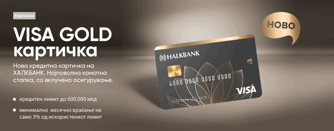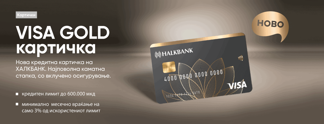 - Полиса за осигурување од незгода од Халк Осигурување со годишна премија од 600 мкд – за период еднаков на рокот на отплата на Visa Gold картичката. Трошокот за полиса е на страна на Банката и не се задолжува корисникот на кредитната картичка. Полисата се обновува секоја година