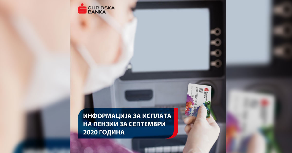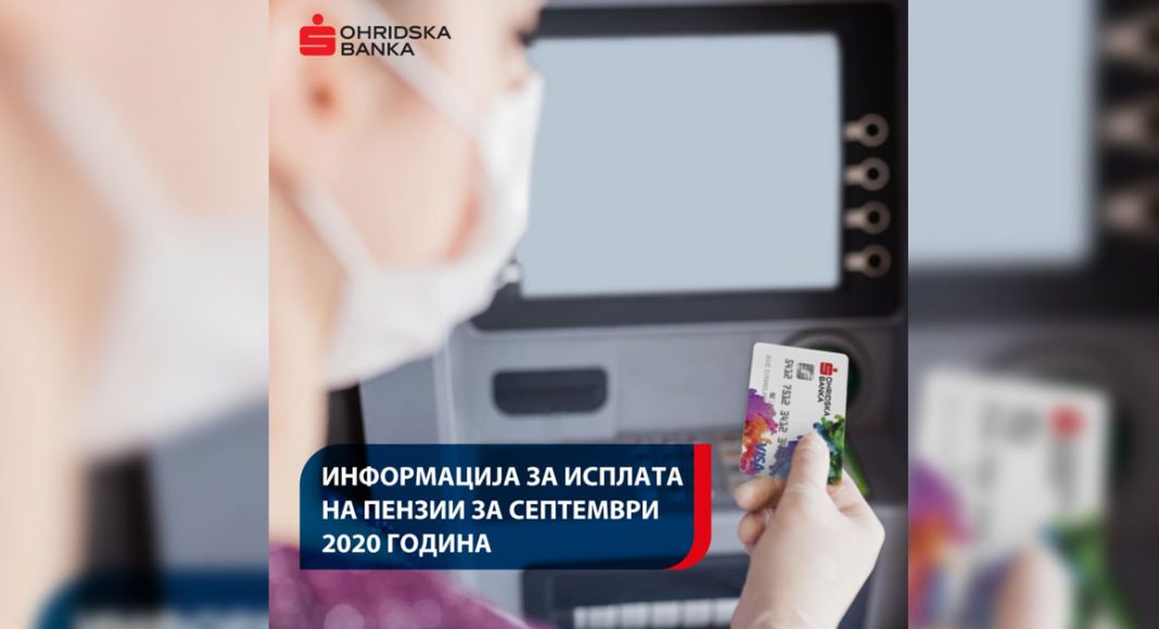 Од 28.09.2020 година (понеделник), за корисниците на пензија, иматели на платежни картички, пензијата ќе биде достапна преку мрежата од 120 банкомати на Охридска банка АД Скопје и Шпаркасе банка Македонија каде што подигањето на средства е без провизија.