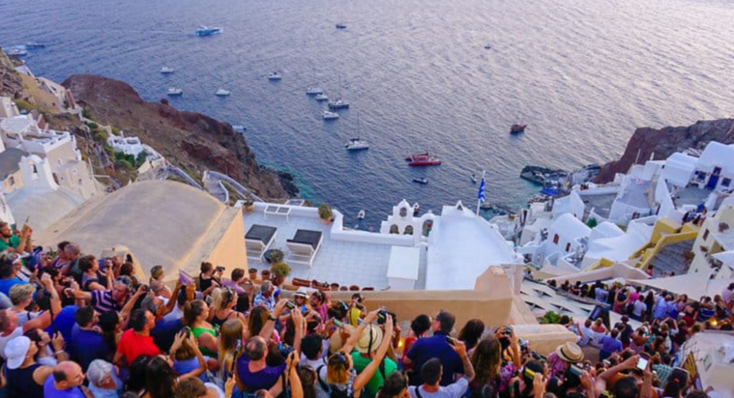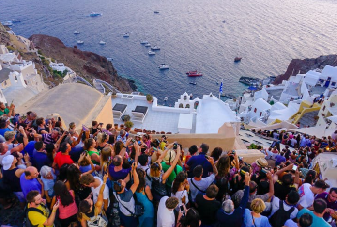 Со население од околу 16.000 жители, островот Санторини се соочи со предизвици поради големиот прилив на туристи, што доведе до долги редици и преполни улици. Локалните власти поставија дневен лимит од 8.000 патници на крстарење почнувајќи од следната година.