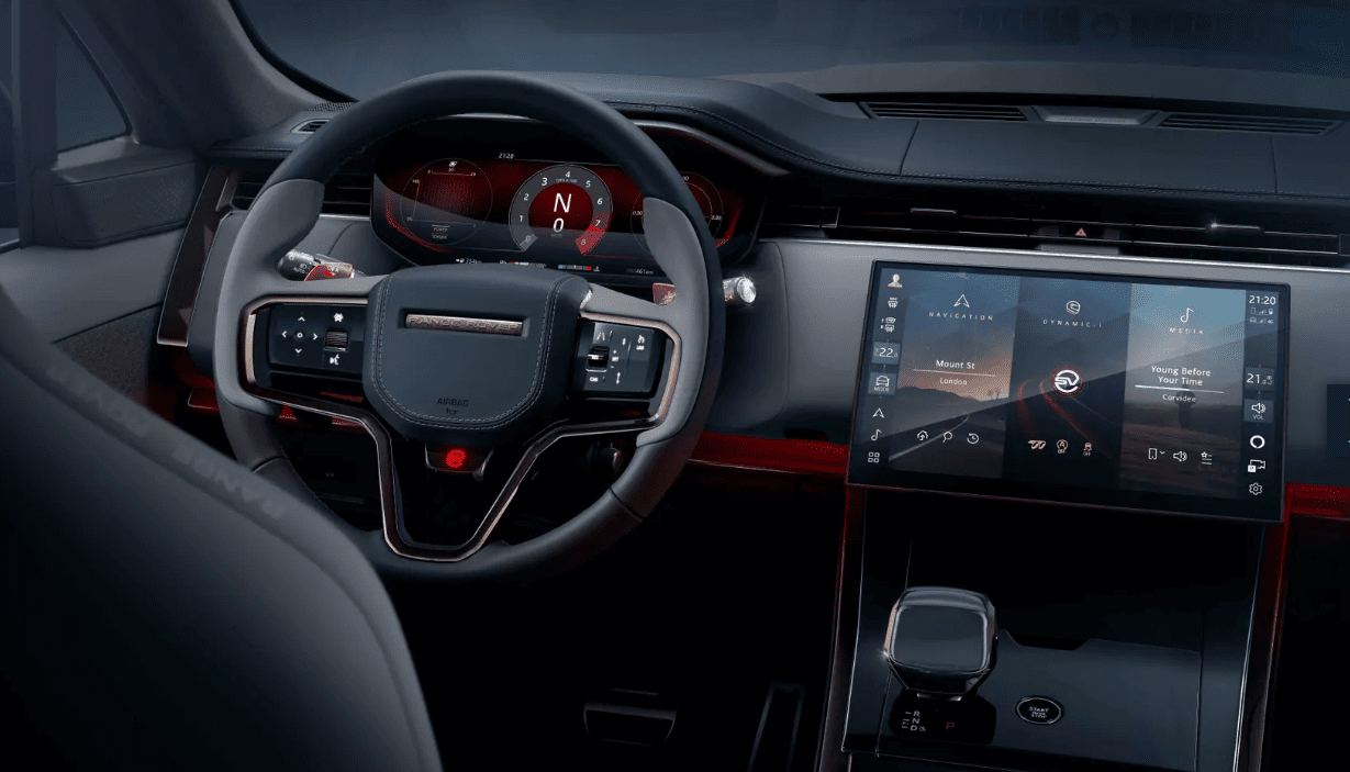 Прекрасно изработениот и редуктивен ентериер на Range Rover Sport исто така е збогатен со интуитивни нови технологии. Комбинирајќи поврзување без напор и најновиот екран на допир, инфозабавата Pivi Pro обезбедува интуитивна контрола на сите функции на возилото преку елегантниот пловечки стаклен дисплеј од 13,1 инчи.