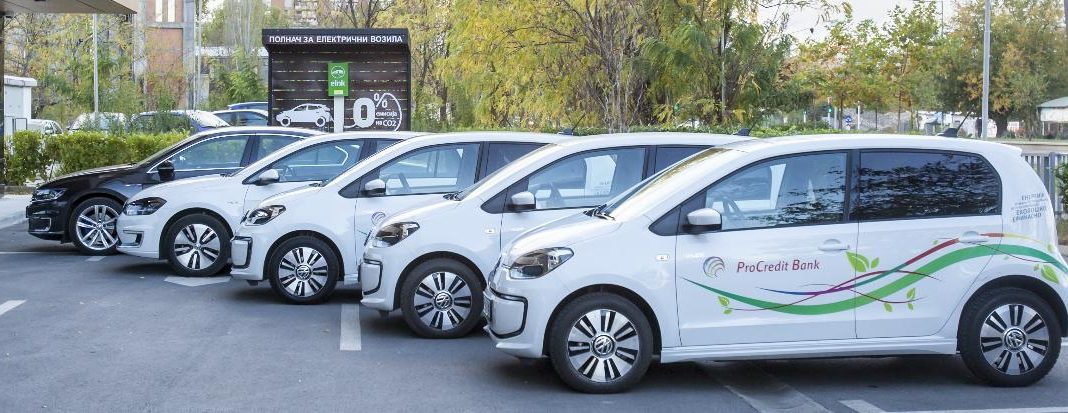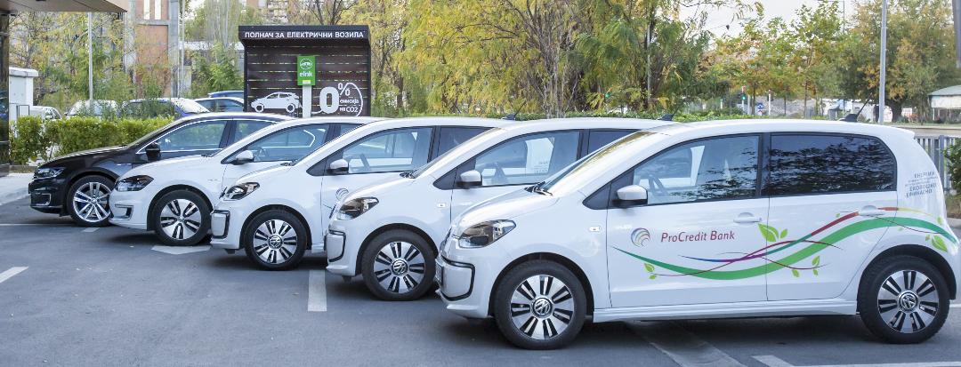 ПроКредит Банка првото хибридно возило го набавила во 2013 година. По позитивното искуство, во 2015 година се набавени 4 електрични возила. Постепено ја зголемувале бројката за сега веќе возниот парк да брои 10 електрични и 1 хибридно или 70% од вкупниот возен парк се електрични возила.