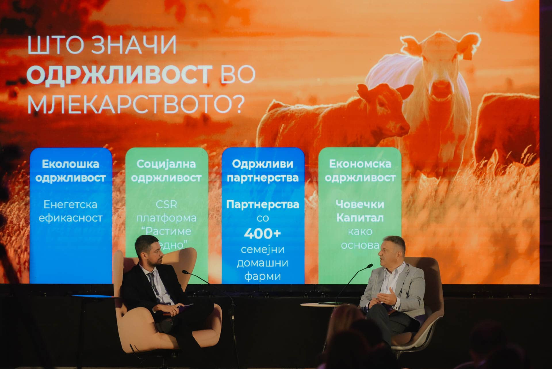 Генералниот директор на Млекара АД Битола, Ѓорѓи Петрушев, во својата главна презентација „Одржливост и лидерство во млечната индустрија“ нагласи дека одржливоста не е само маркетиншки израз, туку системска вредност која мора да биде прифатена од бизнис лидерите. По оваа презентација, Петрушев продолжи со инспиративен разговор, модериран од Владимир Ристевски, извршен директор на Евентика, каде истакна дека лидерството е обврска, а не само титула, која ја носи тежината на довербата што другите ја имаат во тебе. Според него, вистинските лидери треба да ја гледаат кризата како можност за трансформација. За да се изгради култура на еднакви можности, потребно е да се верува дека тоа носи поголеми вредности и подобри резултати, а разновидниот менаџмент значи поефикасно носење одлуки. Петрушев посочи и на важноста да се избере вредноста пред профитот, бидејќи репутацијата е најголемиот капитал на компанијата.