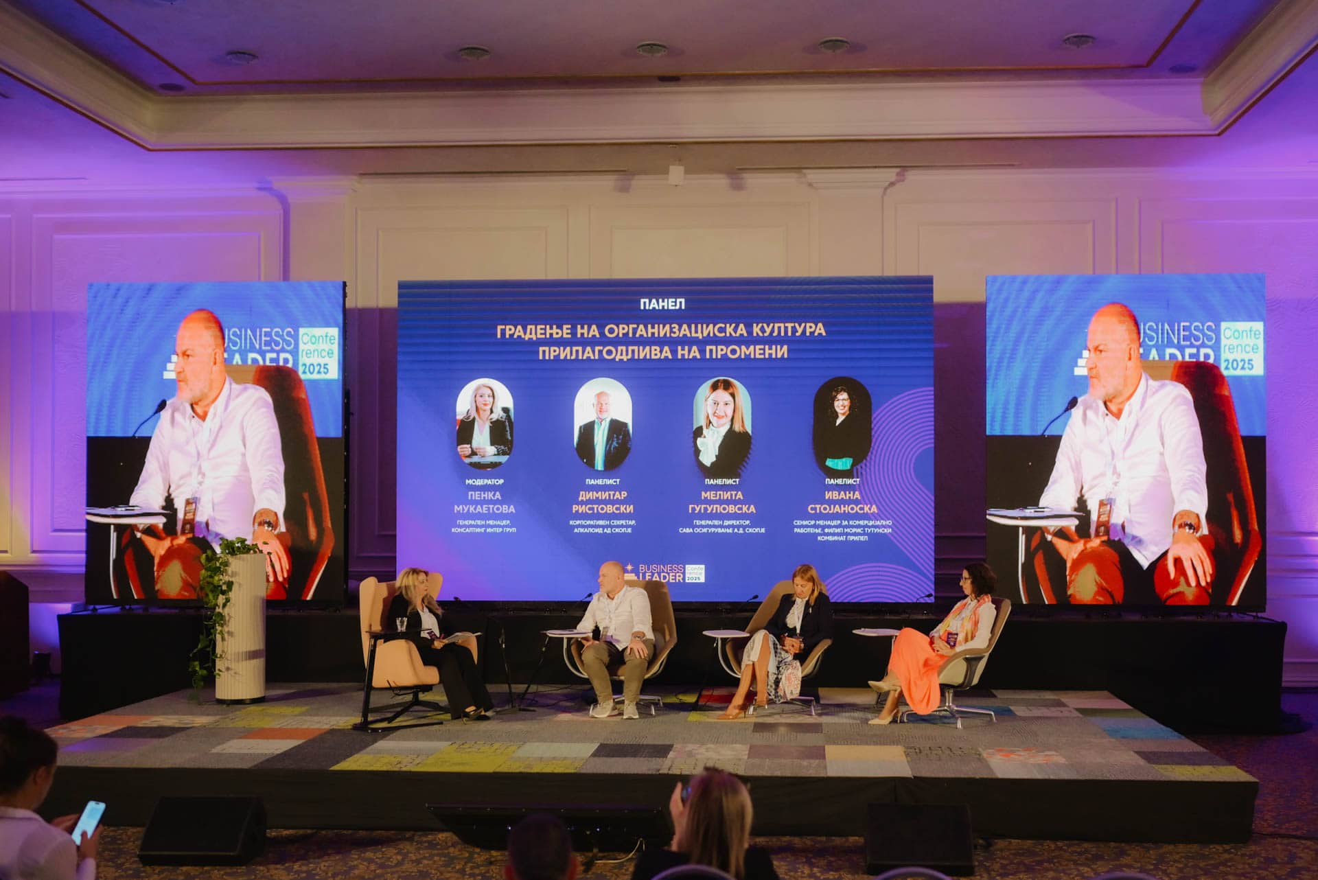 На последната панел-дискусија за „Градење на организациска култура прилагодлива на промени“, модерирана од генералната менаџерка на Консалтинг Интер Груп Пенка Мукаетова, панелистите понудија клучни увиди. Димитар Ристовски, корпоративен секретар на Алкалоид, потенцираше дека силата на една компанија лежи во трајните вредности како искреност и чесност. Ивана Стојаноска, сениор менаџер за комерцијално работење на Филип Морис Тутунски Комбинат Прилеп, ја нагласи важноста на флексибилноста и адаптацијата, додека извршната директорка на Сава Осигурување Мелита Гугуловска истакна дека компаниите мора да имаат цврсти темели и да бидат флексибилни за адаптација.