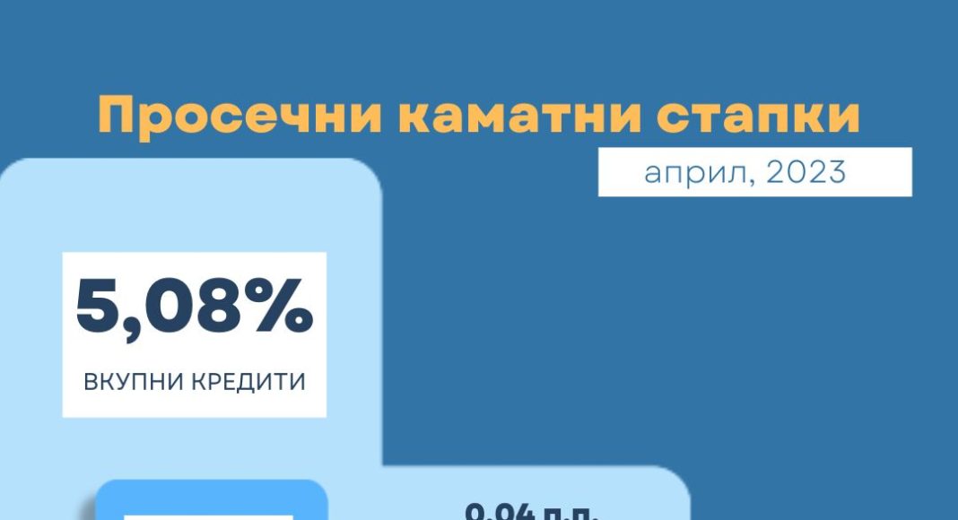 Просечната каматна стапка на вкупните кредити и на вкупните депозити во април бележи раст, покажуваат последните податоци на Народната банка. Просечната стапка на кредити е 5,08, а на депозитите 1,17 проценти.