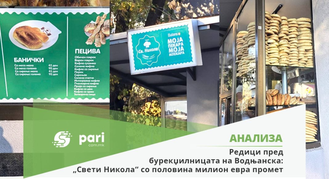 Редица однадвор, внатре нема „игла кај да падне“. Од левата страна, зад пултот пет-шест вработени, раздвижени како во забрзана снимка, од десната неколку масички на кои тешко се наоѓа слободно место. Мал простор, многу луѓе и мирис на свежо испечено тесто од десетиците видови печива, но со прва асоцијација, вруќ, крцкав голем ѓеврек. Тоа е секојдневието на „Свети Никола“, скопската бурекџилница на топ локација – на улицата Водњанска, наспроти Клиничкиот центар.