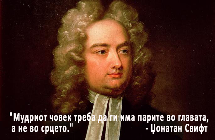 „МУДРИОТ ЧОВЕК ТРЕБА ДА ГИ ИМА ПАРИТЕ ВО ГЛАВАТА, А НЕ ВО СРЦЕТО.“ – Џонатан Свифт