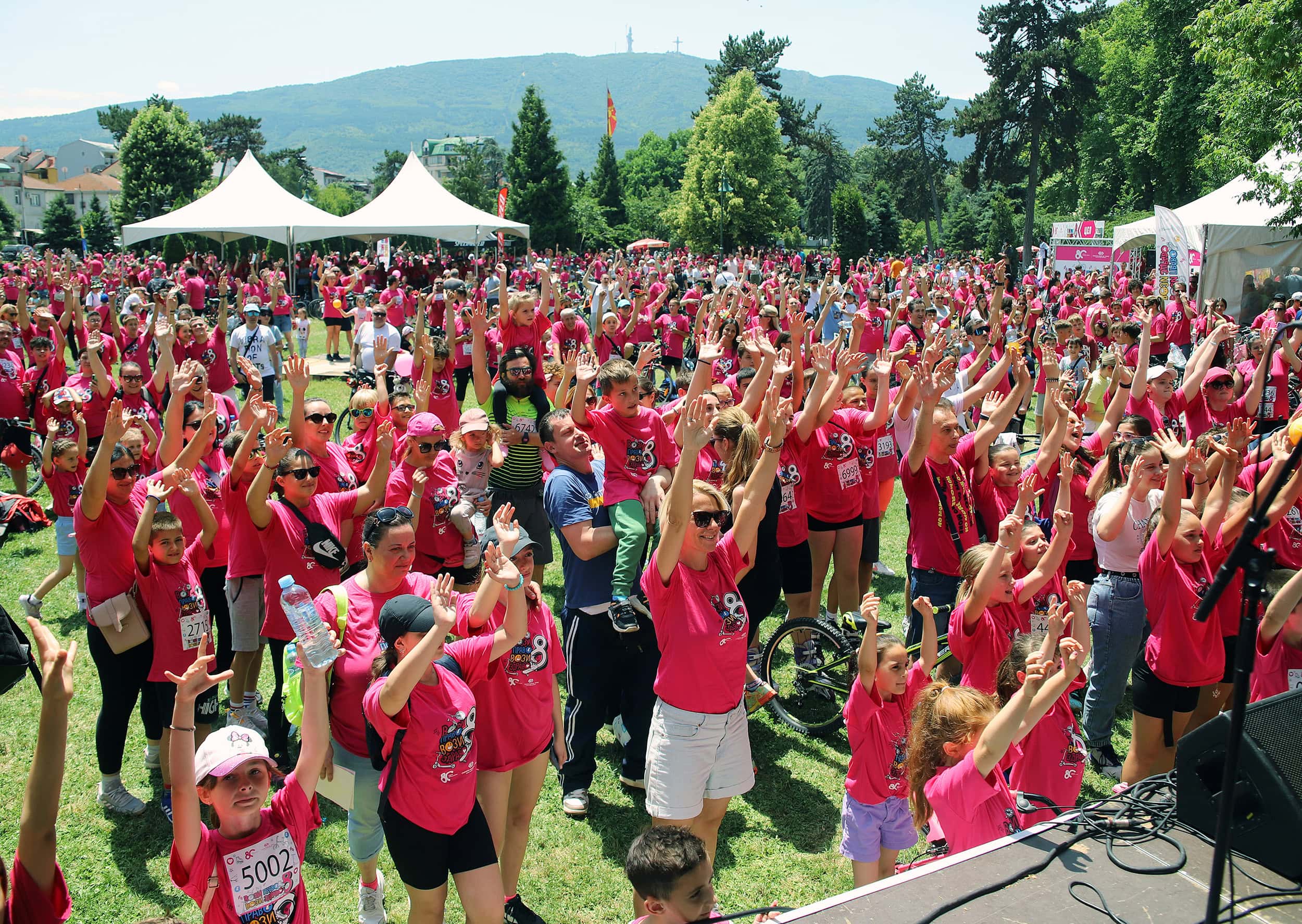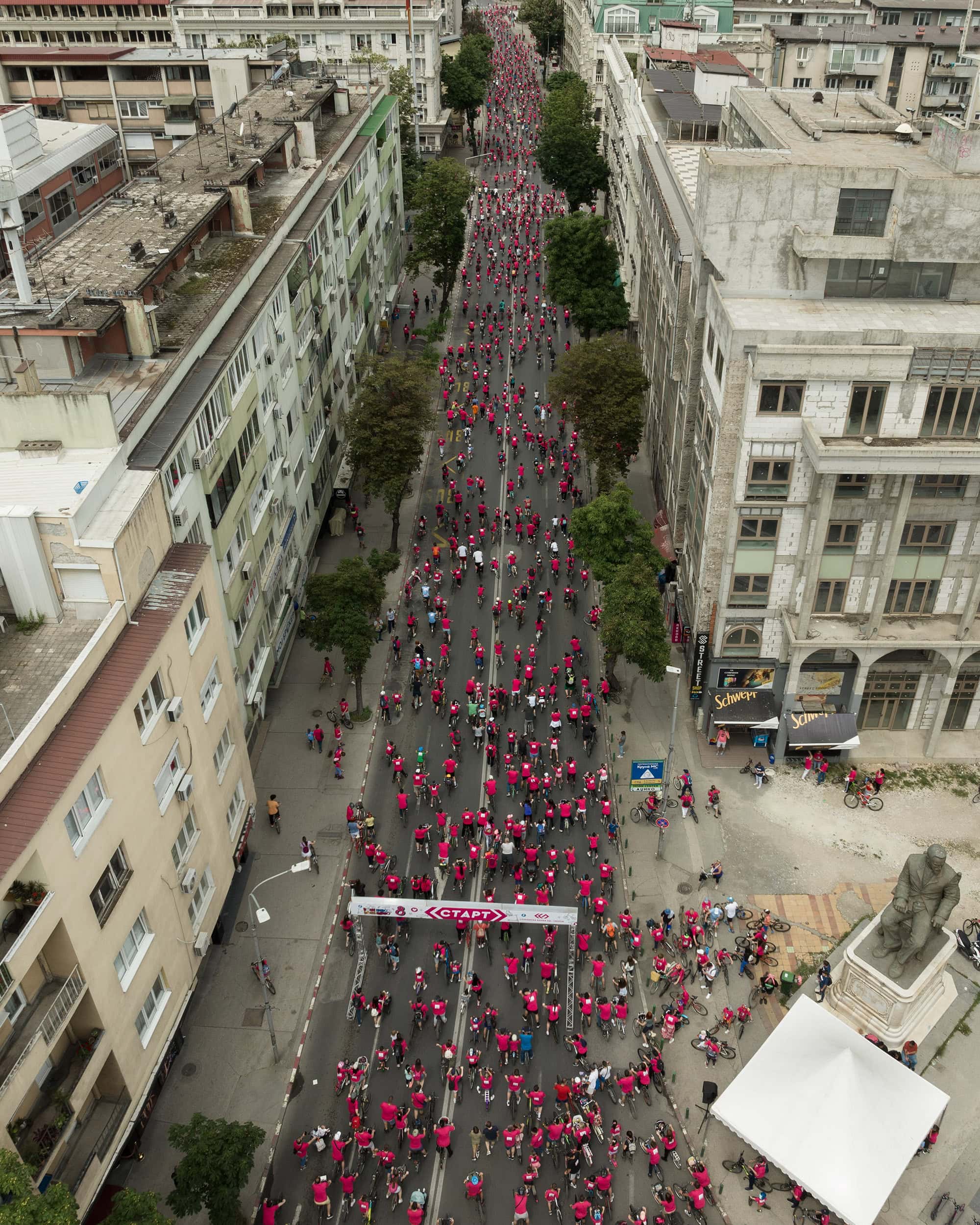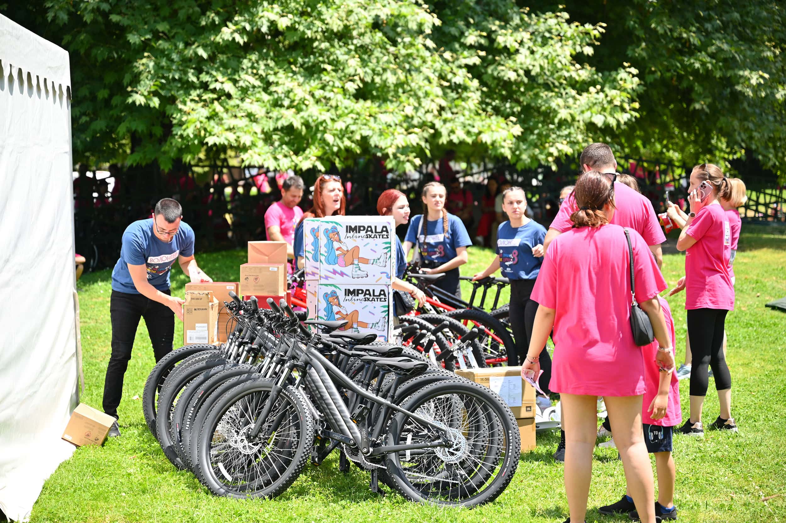 Почетокот на ревијалната трка беше кај Порта Македонија, каде што неколку илјади насмеани лица нестрпливо чекаа да биде означен стартот и да возат по улиците кои само за нив беа ослободени од возила. Возејќи симболично низ центарот на градот, со маичките обезбедени од организаторот, учесниците во долга колона, го постигнаа ефектот на видливост и стигнаа до Градскиот парк за да бидат дел од големата забава организирана во нивна чест. Таму прво се освежија со „Горска“, сладоледи „Фриком“ и грицки од „Витаминка“, па ѝ се препуштија на неколкучасовната забава што ја водеа шармантните водители Марко Марк, Дени Џидрова и Александар Матовски – Цако. Следеше богата музичка програма со ОХО и омилените јунаци од „Пет+ фамилија“ и диџеј Иван, како и повеќе спортски и забавни содржини организирани од Крафт продукција. Посетителите уживаа и во уметничко катче на графити уметникот Dreadpen кој во соработка со посетителите изработуваше креативно платно кое Банката ќе го постави во своите работни простории.