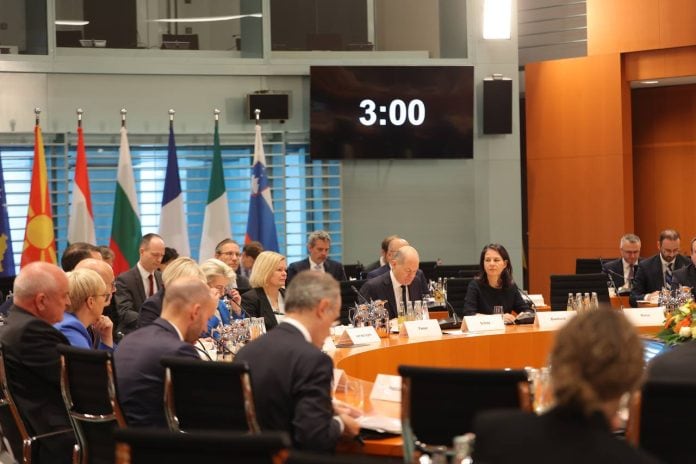 Германскиот канцелар Олаф Шолц и претседателката на Комисијата на ЕУ Урсула Фон дер Лајен ги пречекаа шесте држави од Западен Балкан во понеделникот во Берлин како дел од десеттиот самит на Берлинскиот процес.