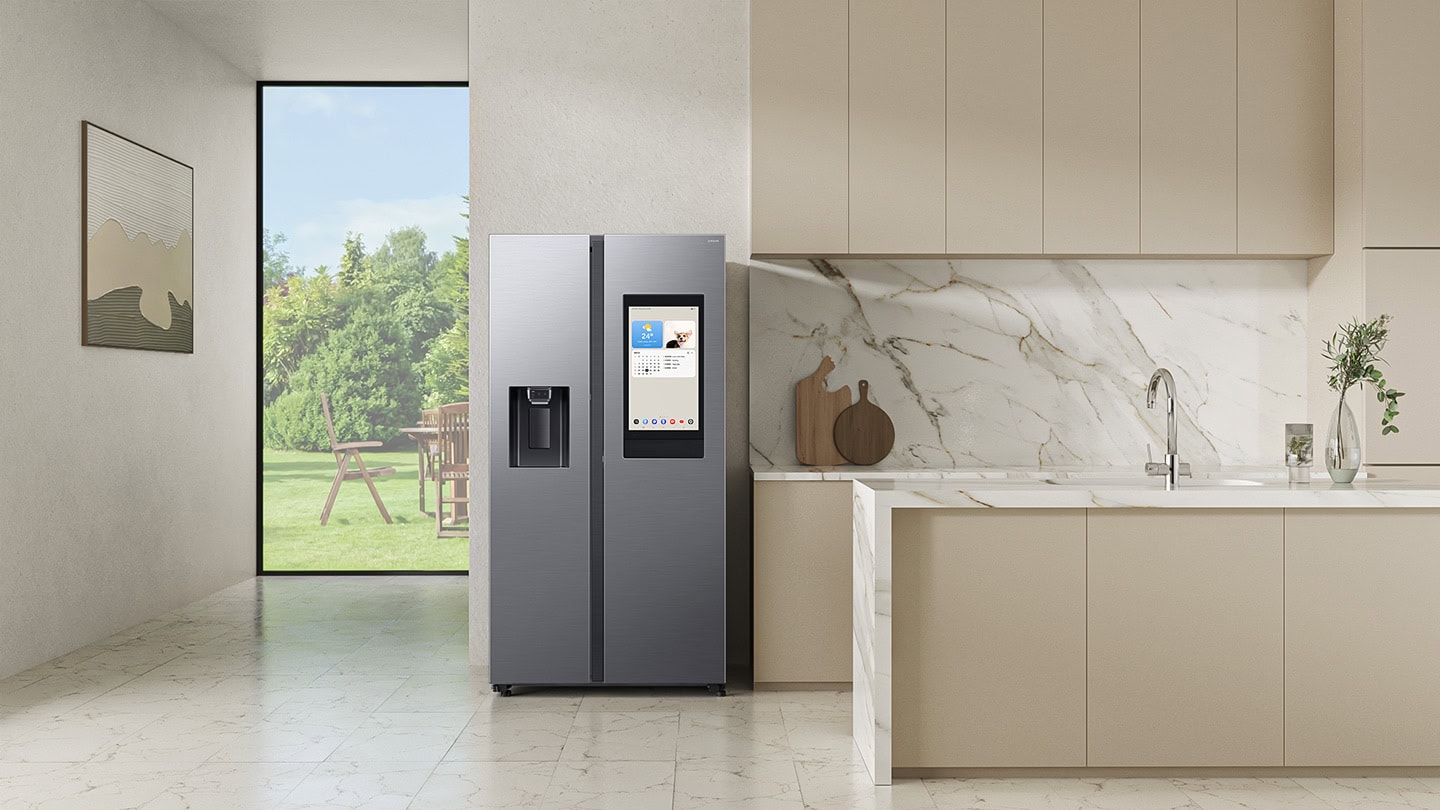 Samsung Electronics го најави глобалното лансирање на својата најнова линија на паметни фрижидери, зацврстувајќи ја визијата „Екрани насекаде“ претставена на CES 2025. Ова проширување вклучува воведување на 21,5-инчен Family Hub екран[1] кај Side by Side фрижидерите.