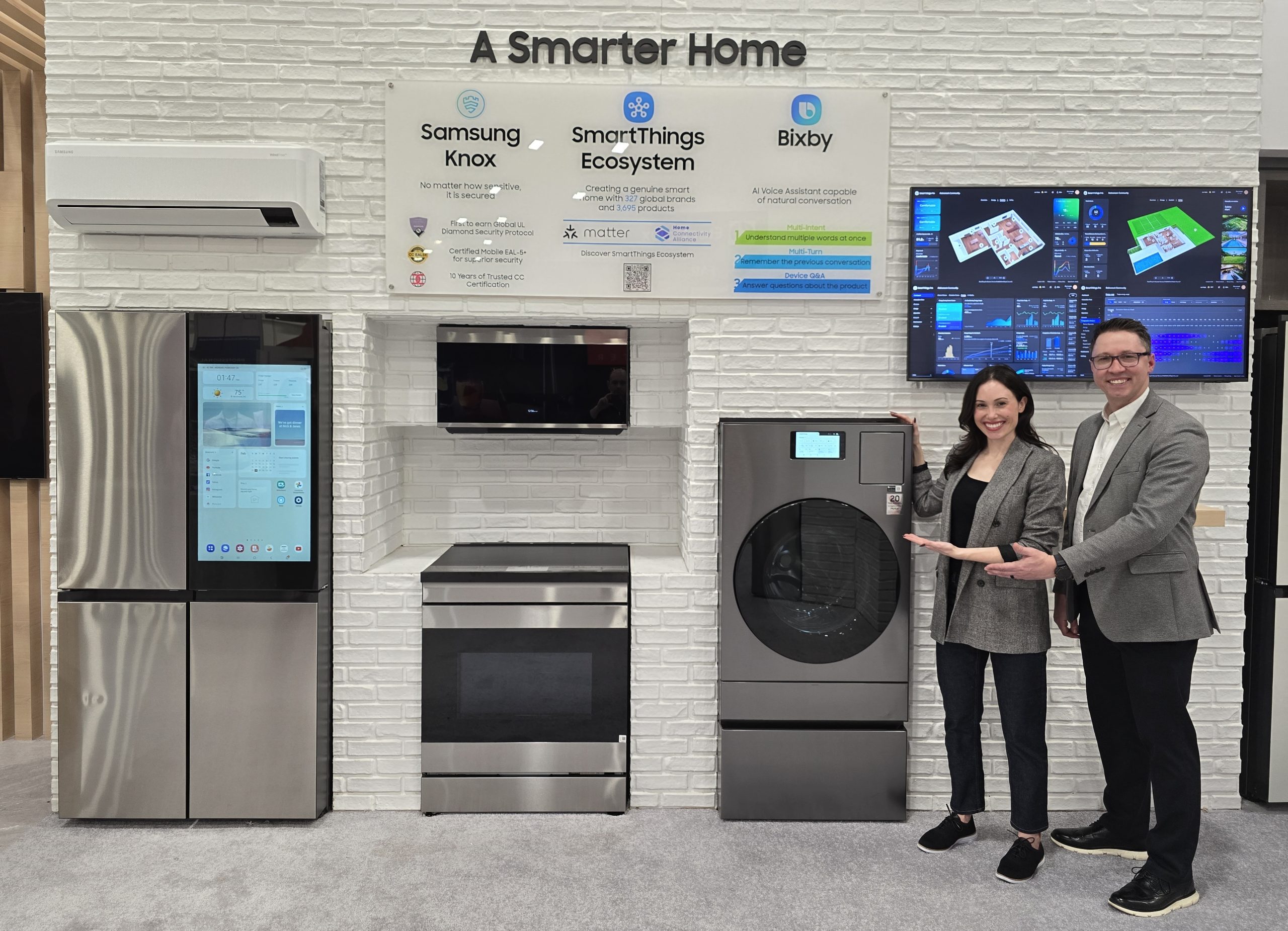 На изложбата ќе бидат претставени Bespoke AI апаратите – вклучувајќи го фрижидерот Bespoke Flex™ со 4 врати и со AI Family Hub™+, Bespoke AI Laundry Combo™ и Bespoke Slide-in Induction Range – кои претставуваат одлични додатоци за секој паметен дом. LCD екраните на овие уреди функционираат како централна контролна точка, овозможувајќи лесен и интуитивен пристап и управување со различни интелигентни, поврзани уреди. Посетителите ќе можат да искусат како имплементацијата на вештачката интелигенција нуди персонализирано искуство и ги подобрува секојдневните рутини, правејќи ги поедноставни и поудобни.
