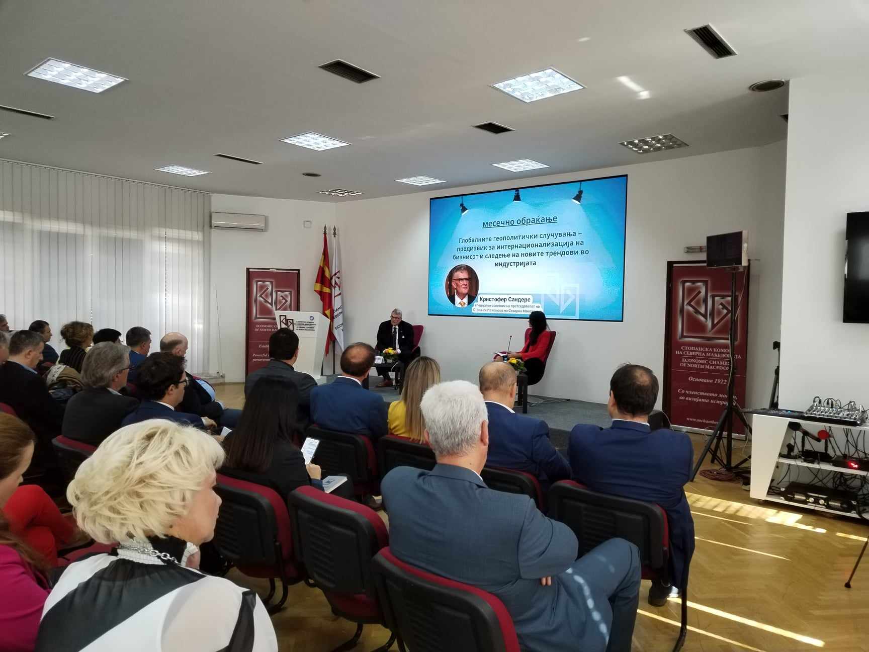 „Последните стратегии за индустријата или образованието се од 2018 година. Што се случи од тогаш? Каде се новите верзии, каде се новите планови? Во оваа земја такво нешто не гледам. И без тоа, како очекувате која било комапнија да инвестира овде кога единствената аспирација е да се стане членка на ЕУ? Колку луѓе ќе ја напуштат оваа земја штом тоа ќе се случи? Каде се моите работници во иднина кога тоа ќе се случи? Каде е фокусот во Македонија за развој на вештини, способности, на образовна основа кои ќе помогнат да се надминат и другите земји, да дојдете во прва позиција, да кажете дека може да создадете тим за да го добиете тоа што треба, денеска, утре, во иднина, да знаете дека преземените обврски ќе бидат исполнети? Тоа е големиот ризик што го забележувам во моментот,“ дециден е Сандерс, кој во Стопанската комора говореше на тема „Глобалните геополитички случувања – предизвик за интернационализација на бизнисот и следење на новите трендови во индустријата”.
