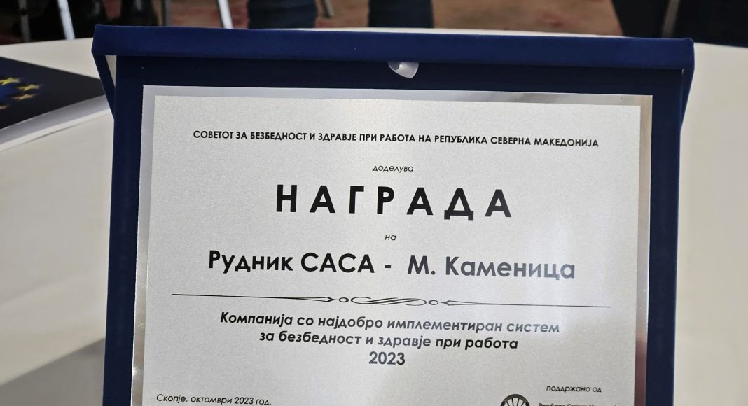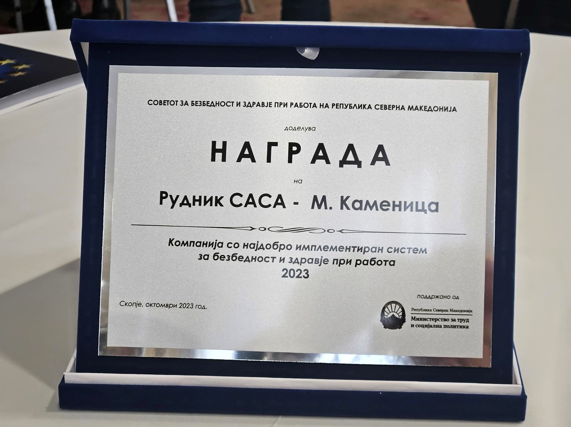 Рудникот за олово и цинк САСА од Македонска Каменица е највисоко рангираниот деловен субјект во годинешниот избор на компании со најдобро имплементиран систем за безбедност и здравје при работа, што го спроведе Советот за безбедност и здравје при работа, со поддршка од Министерството за труд и социјална политика. САСА освои најголем број поени во оценувањето на системите и применетата практика за безбедност и заштита при работа во компаниите, што го изврши специјална комисија составена од стручни лица од оваа област и лекари по медицина на трудот.