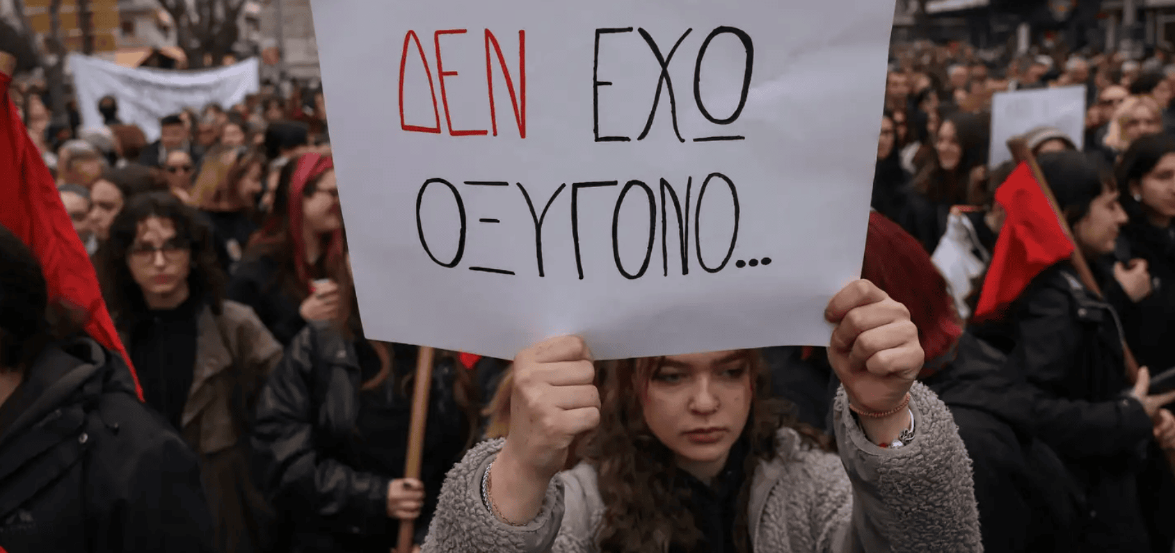 Слоганот на протестите „Немам кислород“ доаѓа од сведоштвото на една од жртвите на железничката несреќа, која и се јавила на својата пријателка непосредно по сударот и ѝ кажала дека се задушува бидејќи не може да дише. Според неофицијални информации што кружат на социјалните мрежи во Грција, дури 30 од жртвите на несреќата биле живи по сударот, но се задушиле или изгореле во експлозијата која следела по колизијата на двата воза.